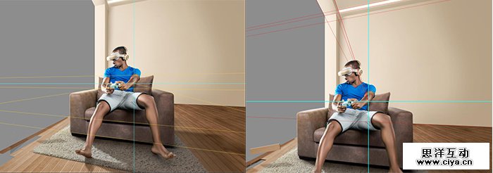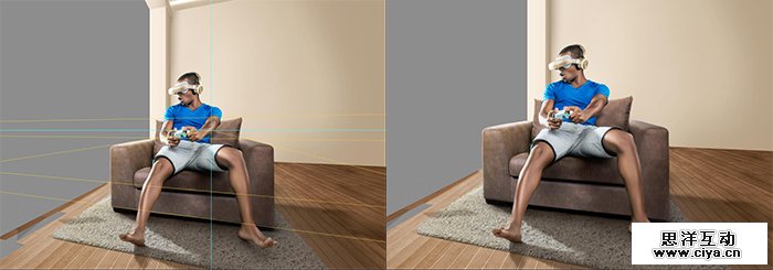 相应的沙发透视也修改,还有人物光影和沙发影子。
