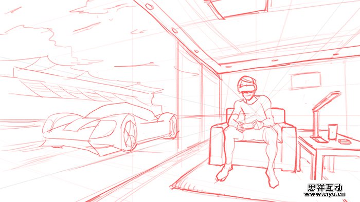先画草图!因为这次的创意较为简单,所以没有像上次那样丧心病狂的画草图了 _(:3」∠)_草图绘制的同时确立好视平线和视中线。