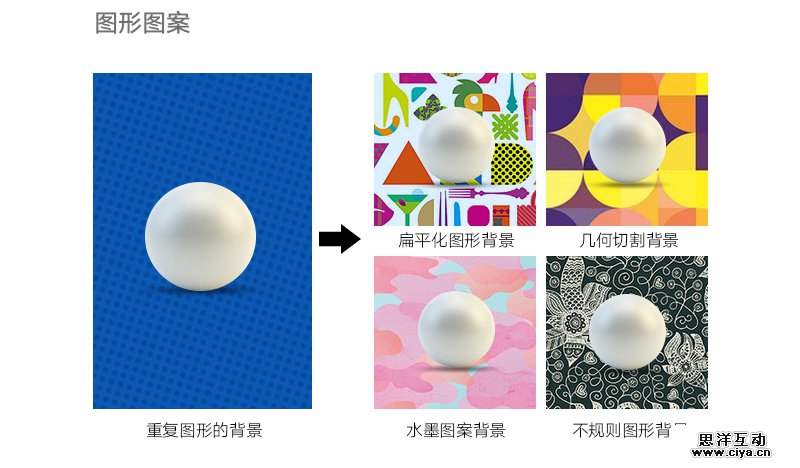 设计中的背景大致可以分为纯颜色、场景、渐变、肌理、图形五大类别,