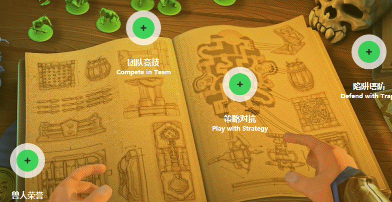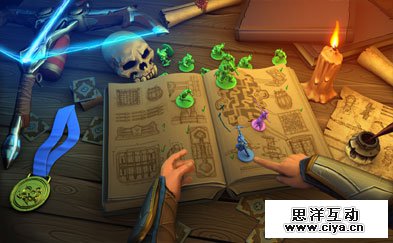 方案被否决后我自己也缓了几天,想法也需要重新酝酿 最终跟项目达成一致,策略就用我们小时候类似的塑料人物小兵那种感觉(可以展现游戏的特色),而主场景改成男主角艾伦的一个工作环境,一张破旧的木桌,一些灯光,一些古老的魔法书武器等散落,而艾伦在制定最新的对抗兽人的策略!不需要露脸,我们希望玩家能自己进入角色,假想自己是艾伦以第一人称视觉的感觉操作画面! 形式上想好用动画的方式引导操作,给用户带来体验上的形象感跟参与感!