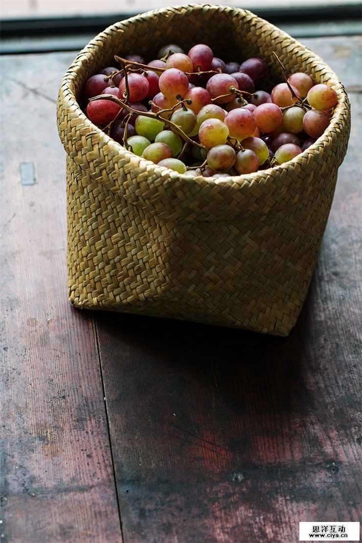 然后我尝试了把葡萄放在画面中间偏上的(图二),画面产生了活泼的动感,显得别具一格,突破了那种常规的‘稳定感觉”。