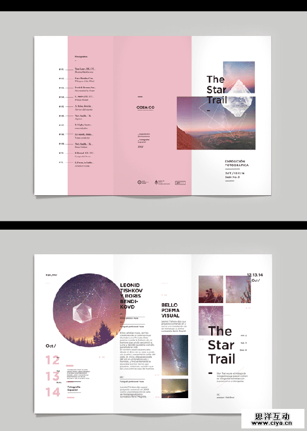 对自己的设计技能还没达到极度自信的地步?在你的三折页上使用一种有趣的材料来增加视觉效果,这可以让一切变得简单起来。就像Marc Ilicic在上图所做一样,将有趣的材料用在三折页的封面上,或者将其作为内页很酷的背景。