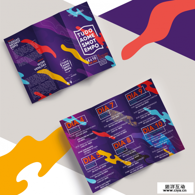我经常看到很多三折页的设计被限制于已经设定好的折页内。忘记它们,然后用一个色彩与图形的组合,创造一个横跨三折页的迷人设计。