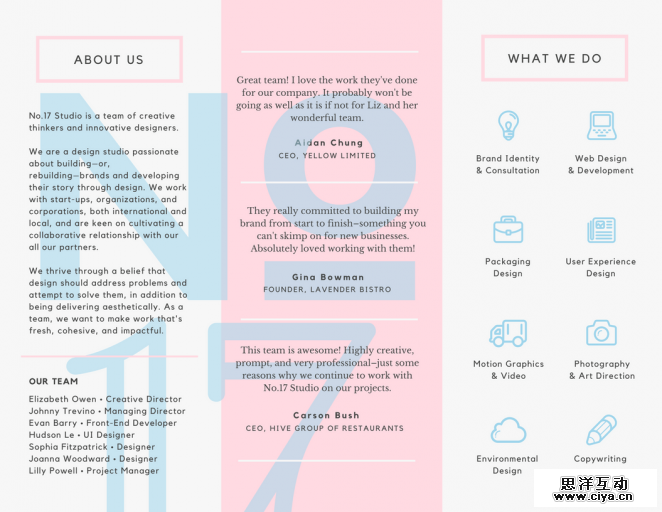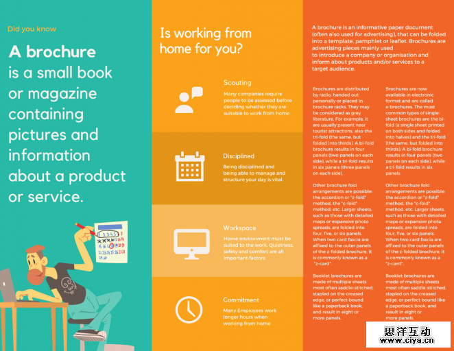 以下这些设计可以证明你的宣传册不必长达多页,它可以仅仅是张双面打印的三折页。