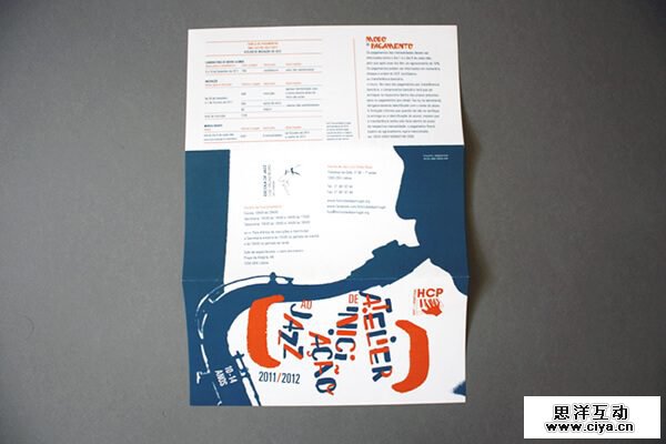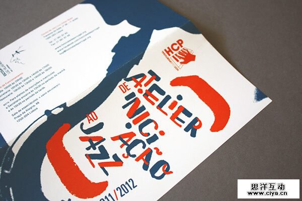 用赏心悦目的插画替代照片,就像João Neves为Hot Club Portugal绘制的上图那样。乐器和音乐家美妙的剪影为这个三折页增添了一种妙不可言的感觉。