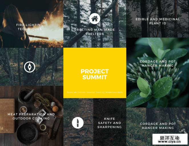 就像上图案例一样,我们可以为三折页主题创作一系列有趣的icon。如果你是icon新手,不妨用最基本的形状来重绘你想作为图标的任何实物。假如你想创作一个树icon,你就可以只用一个三角形和一个方形来塑造。或者你可以随时下载免费的资源——我们有一系列最好的icon资源在这里。