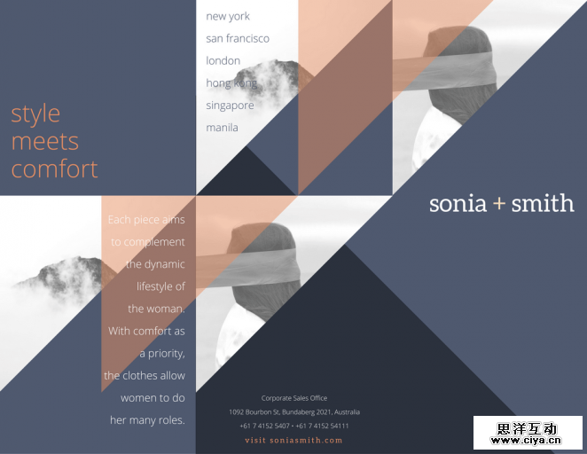 设计师显然在思考如何用单页去影响整体,如何确保整体折页看起来美观。同样,你也要认证考虑当你的版面被翻转时,你的三折页看起来是不是也依旧美观。确保你的设计元素在打开和折叠起来时同样美观。