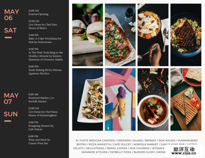 运用摄影素材的时候,要尤其注意素材的细节处理和整体把控。所有照片要保持整体协调,如上例示意那样。