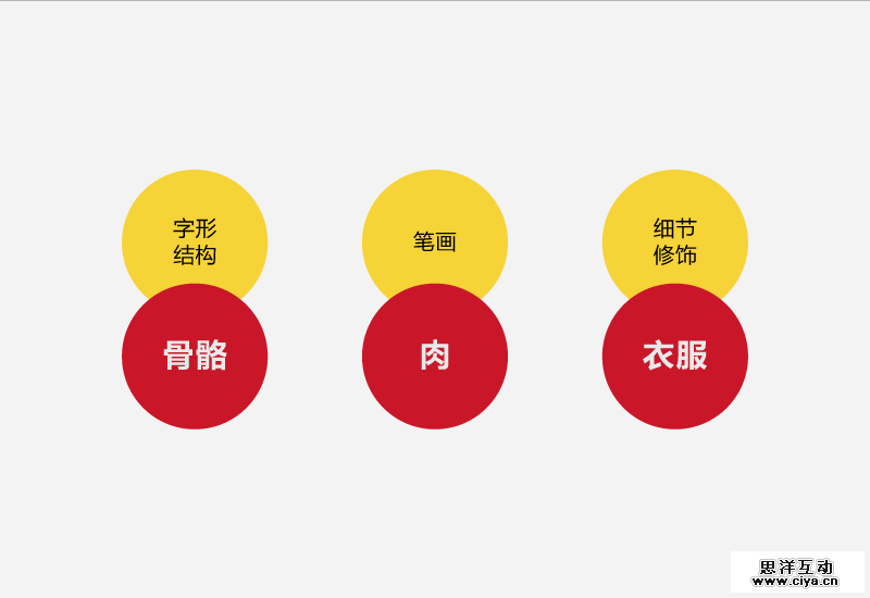 打个比方,组成字体的三个基本要素,就如同人的骨骼、肉和衣着一般,并一一对应。