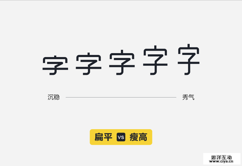 做字体设计的时候,多小伙伴把字做的方方正正的,这并没有什么错,但你可以尝试一下,把字体整体压扁一些,相信会有另外一些意想不到的效果。
