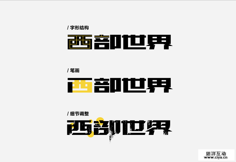 我们知道了我们需要怎样性格的字体,再去做字是不是就简单的很了?只需要将所需性格细分到字形结构、笔画特征、细节这三项中,就好像客户直接给你说我需要高高瘦瘦的字形、笔画细而曲、空间相对宽松等等,这样我们就会很明确设计方向,而不是盲目甚至不知所措。