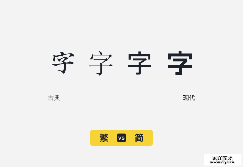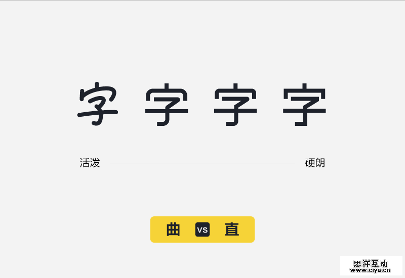那么既然知道了字体性格以及表现字体性格的三个基本元素,那么具体的又有哪些性格的表现与划分呢?首先说明一下,以下所说的某种形态并不是完全绝对的,你可以把一种形态发挥到极致,也可以两种对立的形态相互融合,达到一种对比的效果,希望大家不要固化思维。