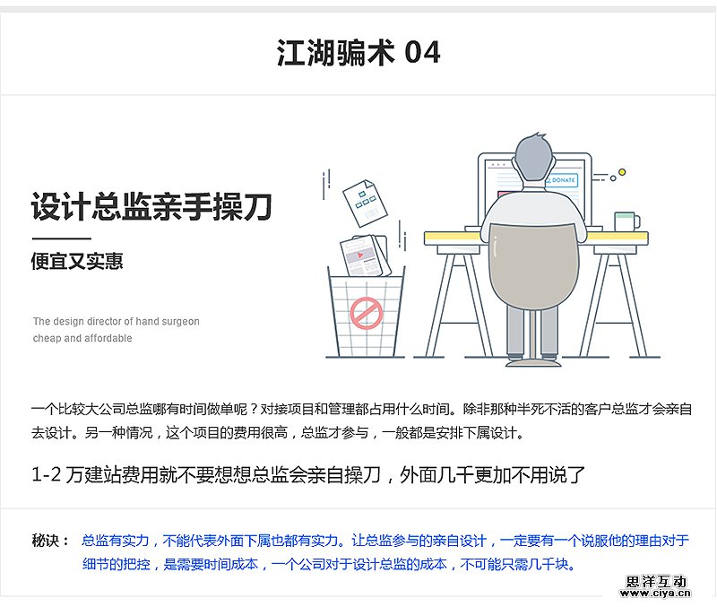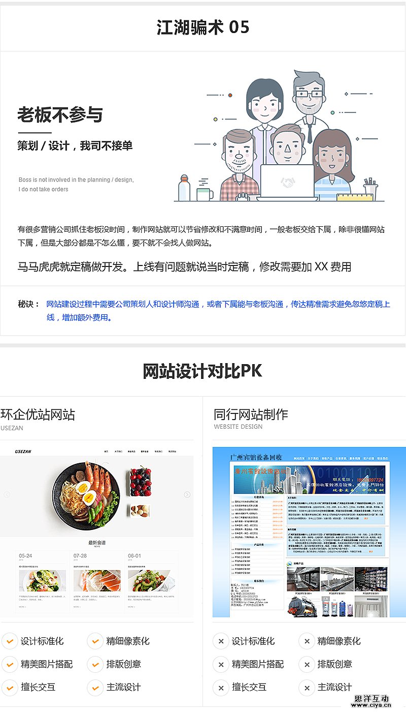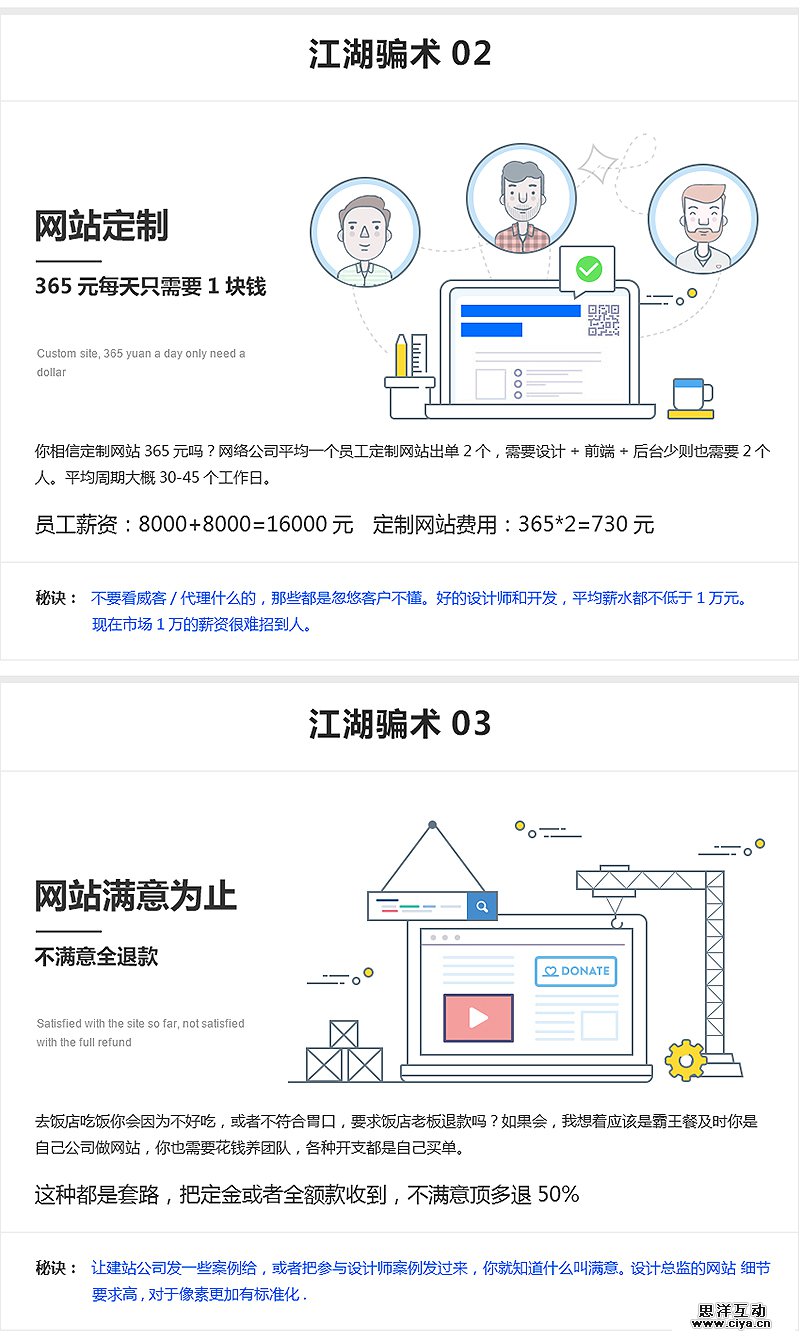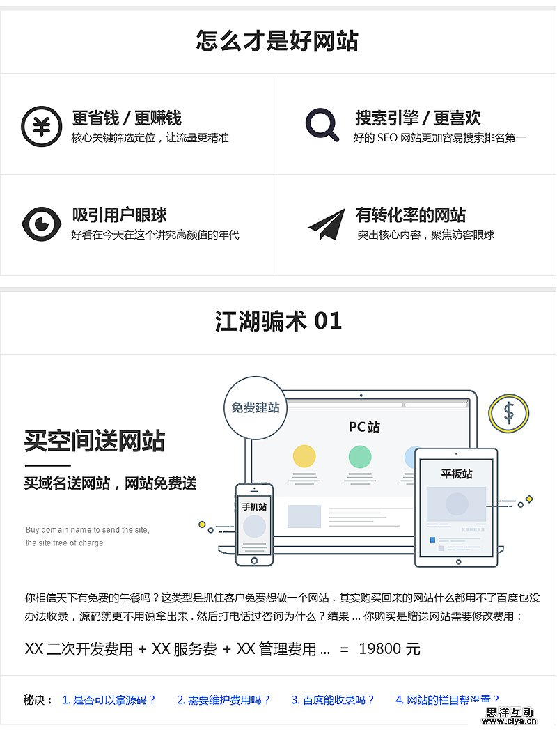 虽然以上并不是每一家建站公司或者个人就可以都一一做到,但是起码你跟客户聊的时候,也需要把你的特色和亮点陈述出来,让客户也明白一个道理,原来建站是拿回事情。XX公司做的方案和报价原来是怎么怎么滴,对上以上的描述和需求。哎,多谢兄弟要不然我就被掉入坑里了。