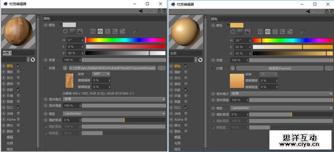 材质A:在颜色通道纹理加载木纹材质贴图, 并打开凹凸通道,同样加载这张木纹 贴图,让木纹材质有凹凸质感。