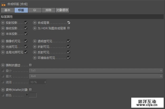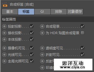 接着在对象栏中右键平面对象,选择cinema4D标签—合成标签。再合成标签的属性中勾选合成背景。我们在下图可以对比出游合成标签与没有合成标签的区别。没有添加合成标签图片背景素材会失真的现象。