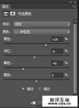 第七步:找到【可选颜色】的(中性色),加青减红和黄色进行最后的整体调色(图中参数仅供参数)之后整体会偏蓝,记得使用蒙版擦出人物。