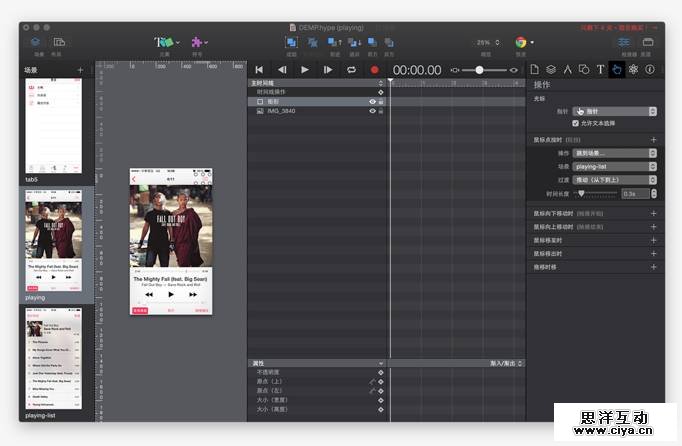这个软件的和上面的flinto有点类似~界面和sketch类似,同时配合sketch也是非常方便。它主要是做 2 个页面间过渡专场特效,元素切换,细节动效的工具。优点很明显,效率高,质感好,缺点就是不能做整套原型。