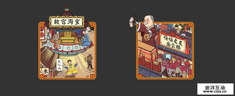 阿里年货大街画风清奇,视觉色彩饱和度较高,颇具现代感;