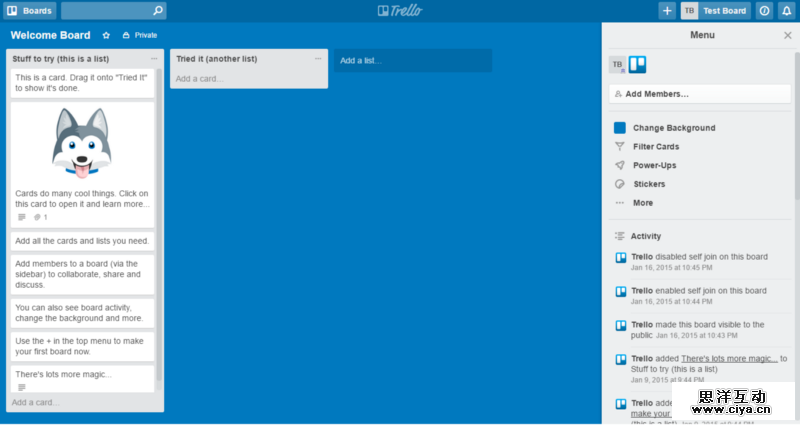 ·示例数据。如,”欢迎界面”是用户看到任务管理应用Trello第一眼会看到的界面,该界面不仅有系统默认的一些未完成条目,还提供了对每个条目进行交互或功能的解释。这种方式为用户提供了比静态页面更加高效的学习方法。