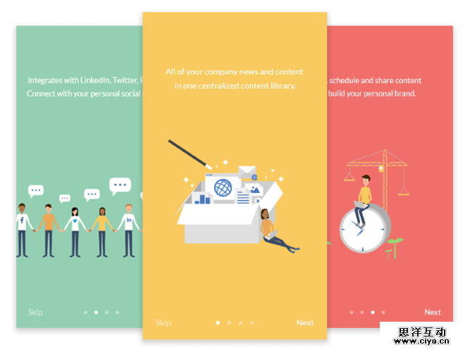 ·滑动手势滚动页面是用户探索应用动力的阻碍者。它使用户与应用之间形成一层隔阂,即使这些引导页面被设计的优美有趣,但用户并没有耐心去把他们看完。为什么呢?因为大多数用户期望能够自己去探索产品,与应用建立联系并看看应用究竟提供了些什么。