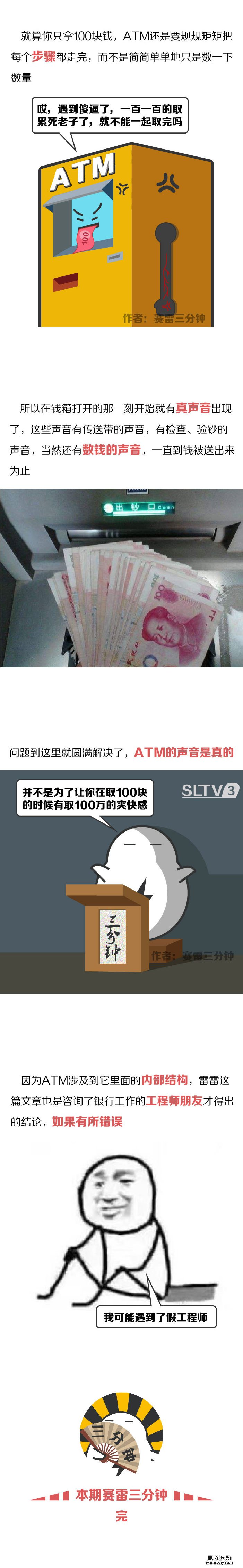 大家每次去ATM取钱的时候,都会听到取款机里,发出“唰唰唰”的声音。有的人说,这是ATM在数钱呢,也有人说这是音响放出来的假声音,为的是提醒你钱来了!那真相究竟如何呢?