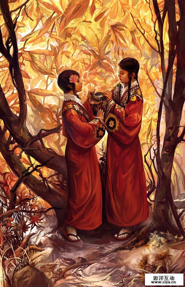 唯美主义插画(Aesthetic Illustration):唯美主义者认为艺术不应具有任何说教的因素,而是追求单纯的美感。他们如痴如醉的追求艺术的“美”,认为“美”才是艺术的本质,并且主张生活应该模仿艺术。现代插画中,特别是幻想题材的一部分插画,其所具备的唯美主义特征,使之可以称为“唯美主义插画”。我本人的作品就是标准的惟美主义插画。如图《甘露》: