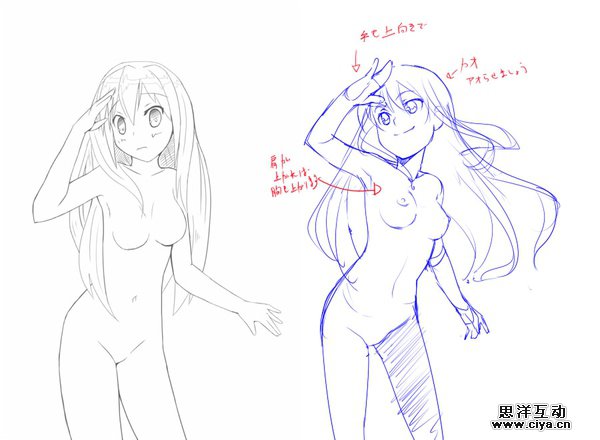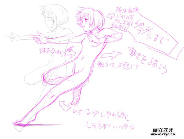 同一个动作,为什么有的画师画出来就充满动态张力,有的就是死板呆滞,很多时候是因为人体作用力冲突不足,即肌肉的拉伸程度,人体的曲张或打开程度不够,没有摆出一个好看的pose。