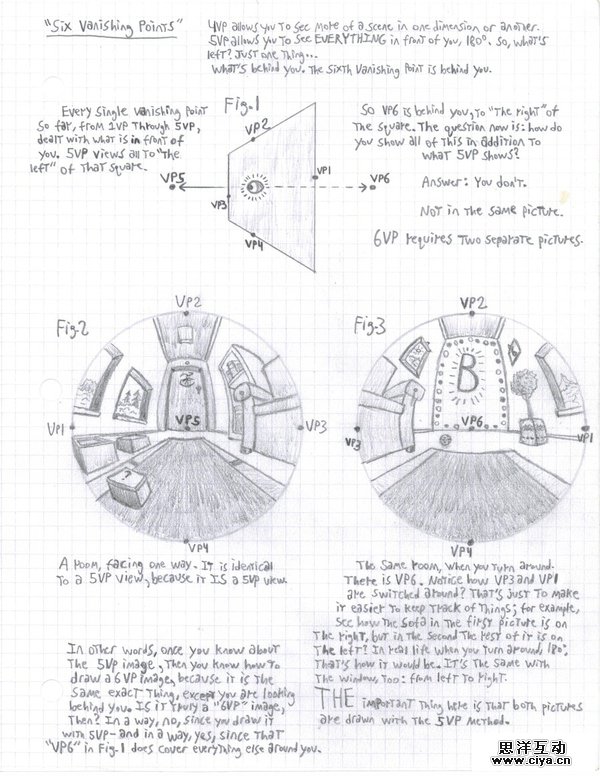 有同学问到六点透视,第六个灭点是在第五个灭点反方向的。具体看图: