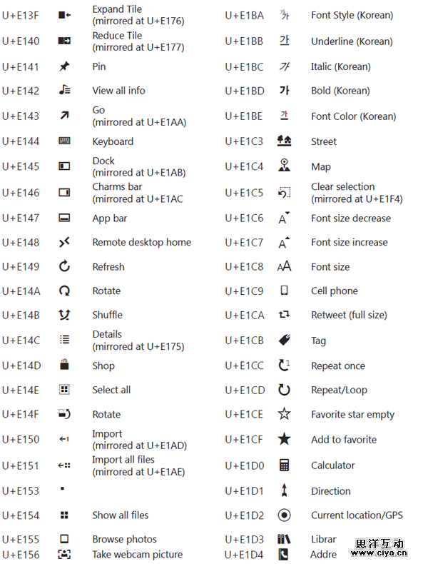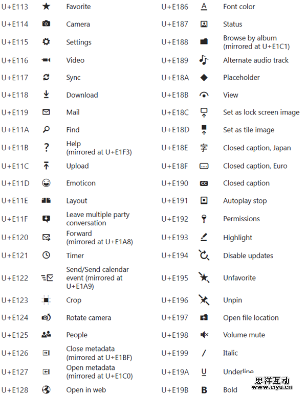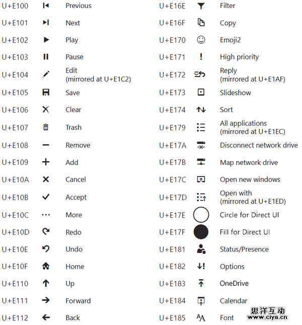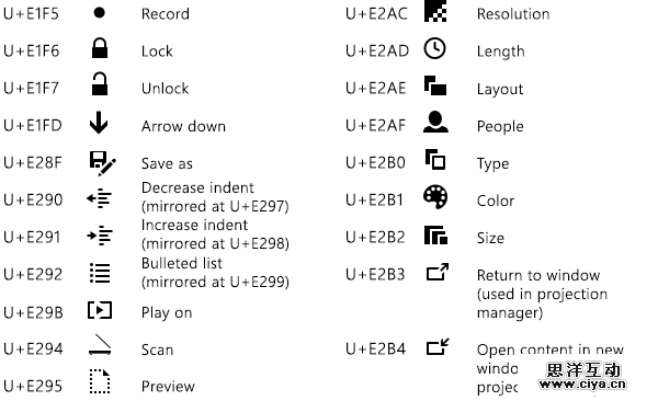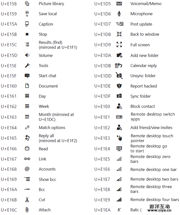 另外,来说说 Segoe UI Symbol 图标。用这些图标会显得你的 Modern UI 更加接近原本的设计。
