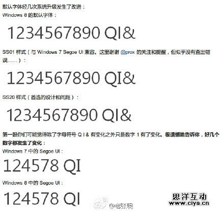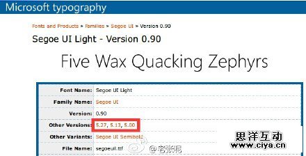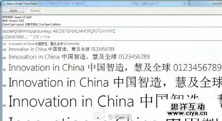 我想这大概就是佳伟截图中出现两种不同样式的 Segoe 的原因了:微软中途发布了新版本的 Segoe 字体。