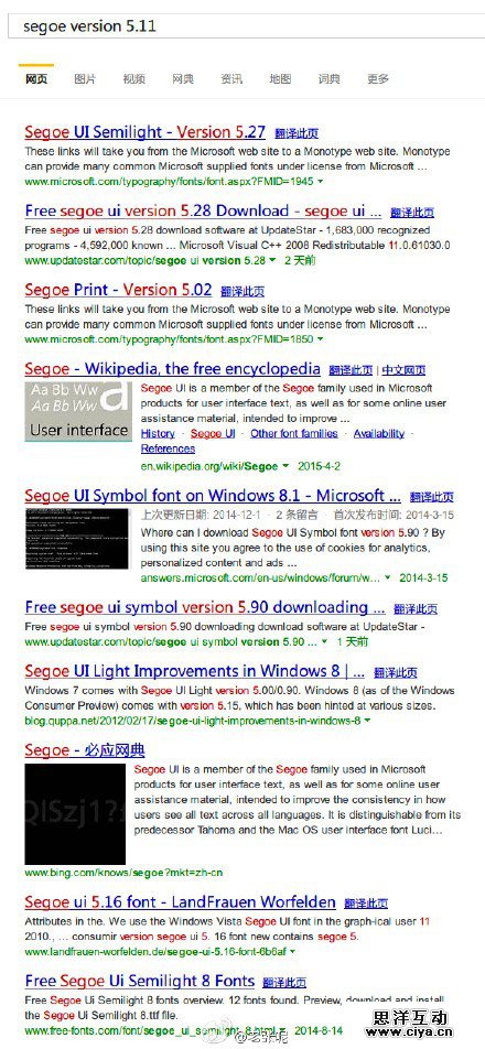 Segoe 字体本身是不包括中文的。微软当前对它的用法是,与微软雅黑中文搭配成新版 YaHei Light,或与方正中等线搭配成 Windows Phone 自带 DengXian 字体。所以呢,也许是 5.11 版本打包的时候出错了,直接将一整套微软雅黑扔了进去……(注意5.11与其他任何版本的中 文字体都不一样,其他的选择了默认宋体作为中文字体缺失时的替换展示字体,而 5.11 版本带有雅黑)