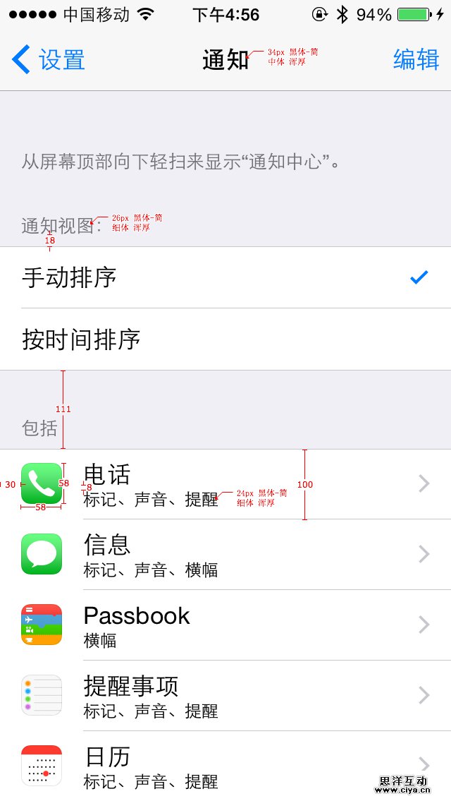 以iPhone5通知中页面为例