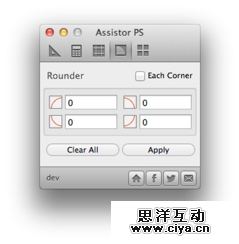 可以把圆的换成方的把方的换成圆的。勾选 each corner 可单独编辑每个角。使用前请先在 PS 选择一个矩形。