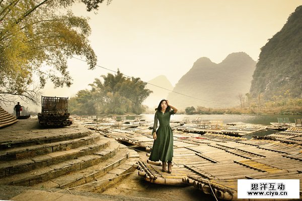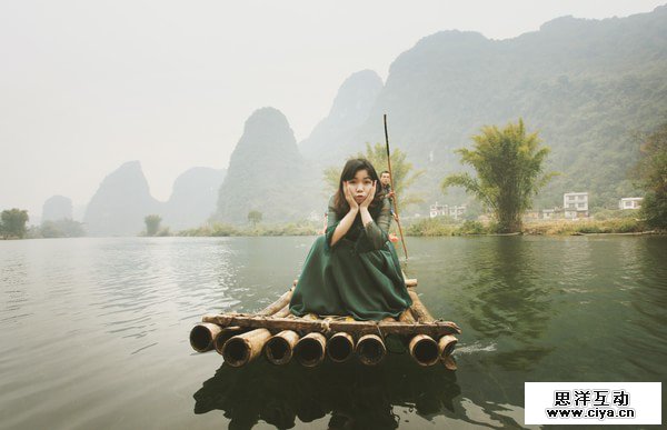 在遇龙河坐竹筏,和竹筏小哥聊得特别欢,小哥帮着我实现了不少拍摄想法。河上有很多河中的吊脚楼亭子,在旺季时卖零食,但淡季时是空的,我说跟小哥说我想把相机放在亭子上,然后我们划一圈让相机自己拍,用快门线设定了间隔2秒无限拍摄,于是就拍出了这史上和相机离得最远的自拍。