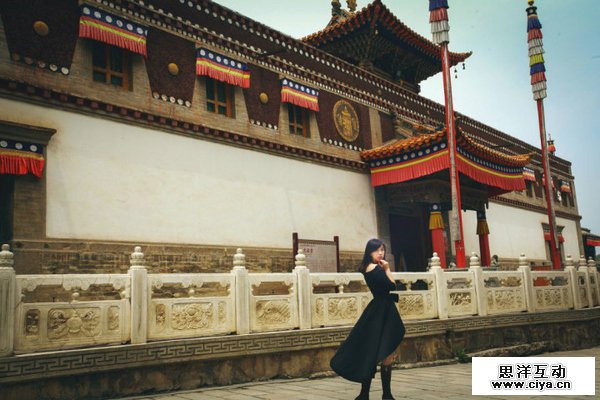 塔尔寺越走到里面越安静,只有三三两两而过匆匆的僧人。相机放在另外一边的汉白玉栏杆上。这张其实结合了上面的一些关键词,跟我念:在静物空旷的地方,边走边甩裙子变回头,哈哈。