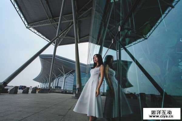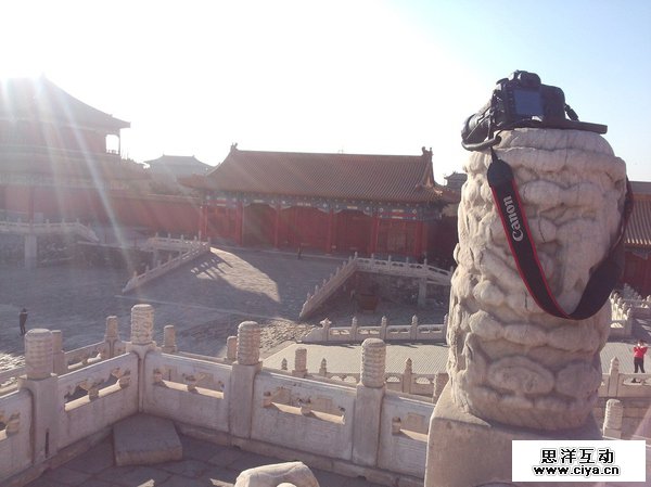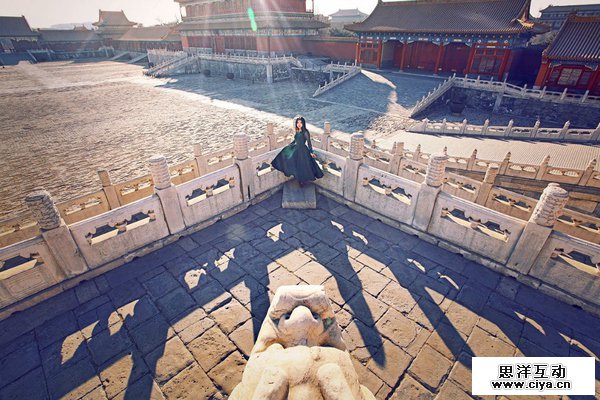 相机放在栏杆的狮子头上,由于右侧都是阴影,所以我计划出现在左侧阳光中的台阶上,拍完后发现由于右侧的腿在边缘,所以有很强的拉伸感。