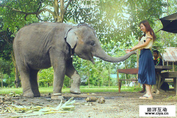 把相机放在八爪鱼脚架然后支在地上,走过去后伸出手,小象就开心地伸出鼻子跟我玩。