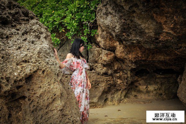 海边的礁石拥有特别的质感,几块大礁石的层次令人着迷,我把相机放在石头上,用纸巾和手机把镜头垫高,然后把自己放到画面中去。那时闷热得快要下雨了,慌忙地拍了一张就走,后来还真的下起了太阳雨。