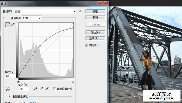 用羽化边缘200的套索工具圈住我和我周围的景色,曲线拉亮,脸部用同样方法拉亮。