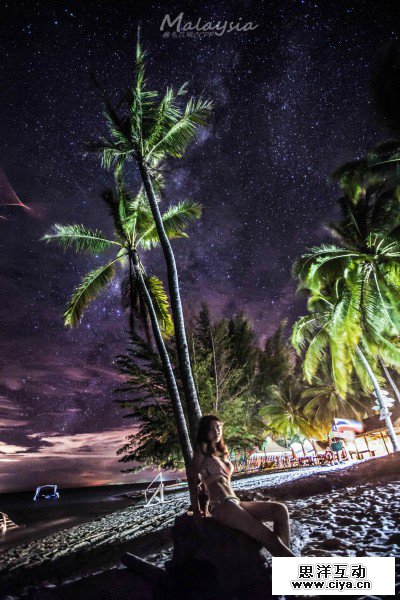 星空可以说是自拍乃至直接拍摄都比较难的一个课题了。因为不单要找到星空,还要找到合适的前景才会拍得好看,我并不待见一个人杵在那背后一条银河这样的构图,所以即使是拍星星也要精心挑选背静。岛上的这两棵椰子树是非常合适的了,灯光来源于背后酒店里非常微弱的灯光。星空比基尼,这个夏天足以了。
