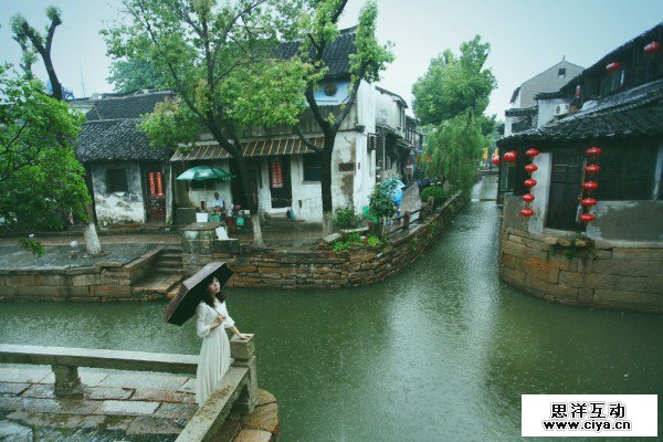 水乡下雨了,我在拍风景的时候想自己出现在岸边会很好看,就把相机放在桥上,然后跑下去拍。