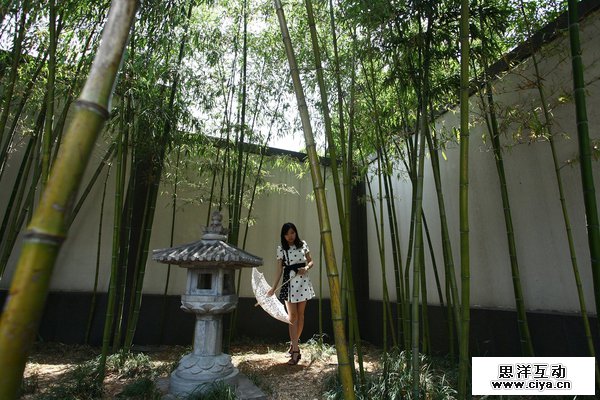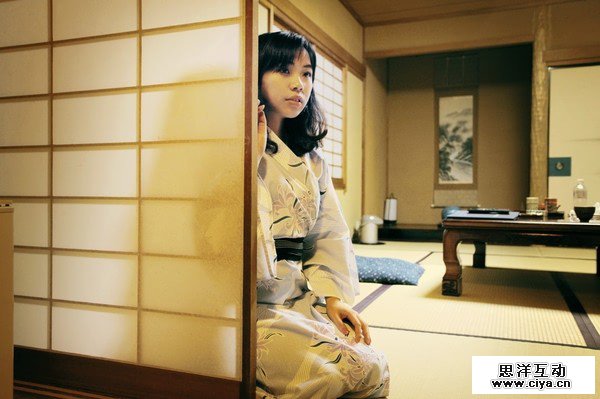 这张照片是放在茶室的椅子上拍的,由于光线比较暗,我就使用了较大的光圈,把对焦点放在拉门的边上,而我出现在拉门旁边,就可以保证焦点准确。设置好相机后要跑过去跪好假装端庄的样子,还是蛮拼的~