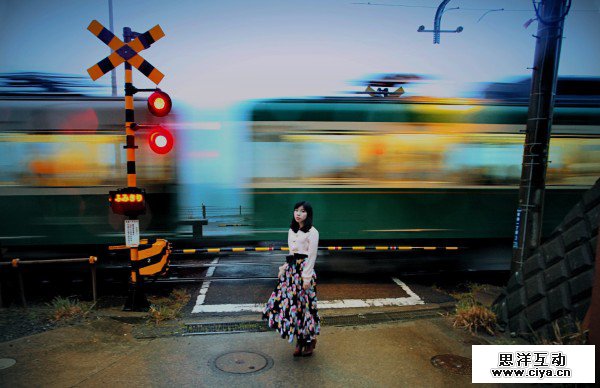 背后的电车是大名鼎鼎的江之电,也就是灌篮高手里的那趟电车,为了能拍到电车飞驰而过的画面,我设定了1/10秒的快门等待电车,又是连拍又是慢们,我只能站在那里一动不动。
