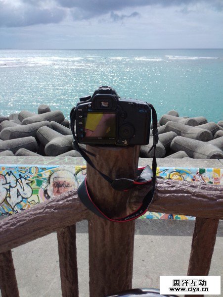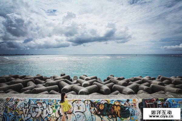 冲绳美国村的日不落海滩。这张照片其实非常冒险,我把相机放在很高的楼梯栏杆上,并且镜头要往下才能拍到涂鸦,然后要在十秒内冲下去。拍的时候我非常担心相机会因为抖动而掉下去。