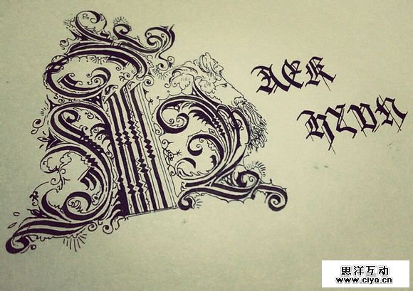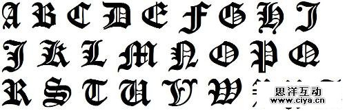 手写的哥特体没有印刷的哥特体那么多变化,一般都长成这样: