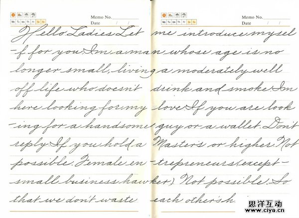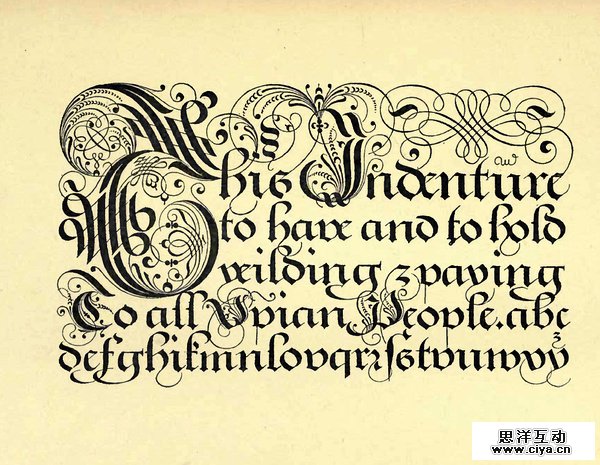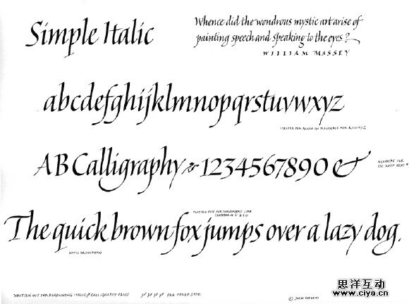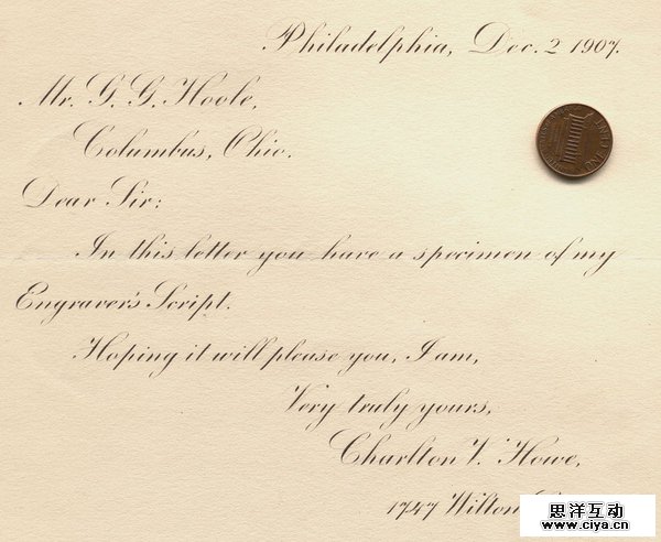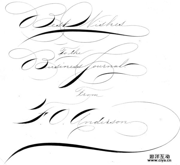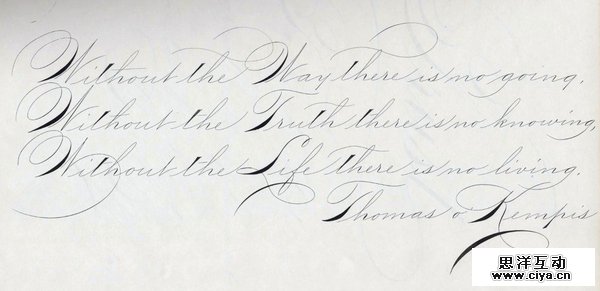 斯宾塞体简称Spen,看上去很像Copperplate,区别在于字母的粗细变化没有那么明显,因为是用点尖写成的。
