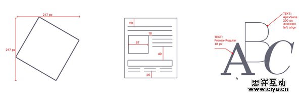 - 内容:主要由 Annotation(注释,国内俗称“标注”)和 Measurement(量度)构成。Annotation 既注释设计稿中界面元素所使用的字体字型、色值等,Measurement 则注明各元素的尺寸及它们的边距,留白等。