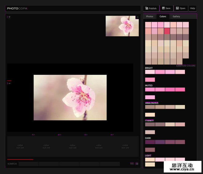 所以,如果真的有色彩让你特别喜欢的照片,不妨直接借助它来制作一个好用而高效的配色方案。诸如 Photocopa 这样的工具会让这个过程更快捷,你所需要做的就是上传照片,然后探索可能的方案。
