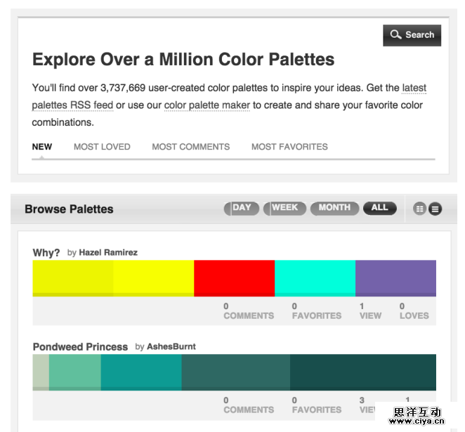 Colourlovers 就是一个典型的围绕色彩而存在的创意社区,来自世界各地的色彩爱好者在这里集结,加入社区便可以同370万来自世界各地的设计师一同探讨配色方案。