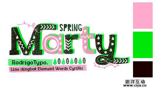 这个案例中,Rodrigo 使用了Marty字体,色彩上也坚持了他的三色原则,只使用了粉色、黑色和绿色。